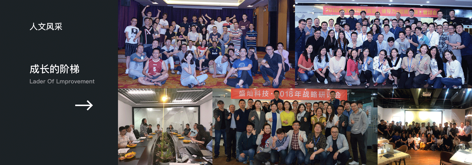 盛灿学院将打造产品、技术、设计、销售、市场、运营、渠道等专业能力课程体系。针对不同专业类别的员工在不同职业发展等级上,都将设计有配套的能力要素,使员工清楚的知道自己应该努力和发展的方向;同时公司还根据能力要素标准,设计了一系列的专业能力培训,帮助员工尽快达到能力要求,实现发展目标。